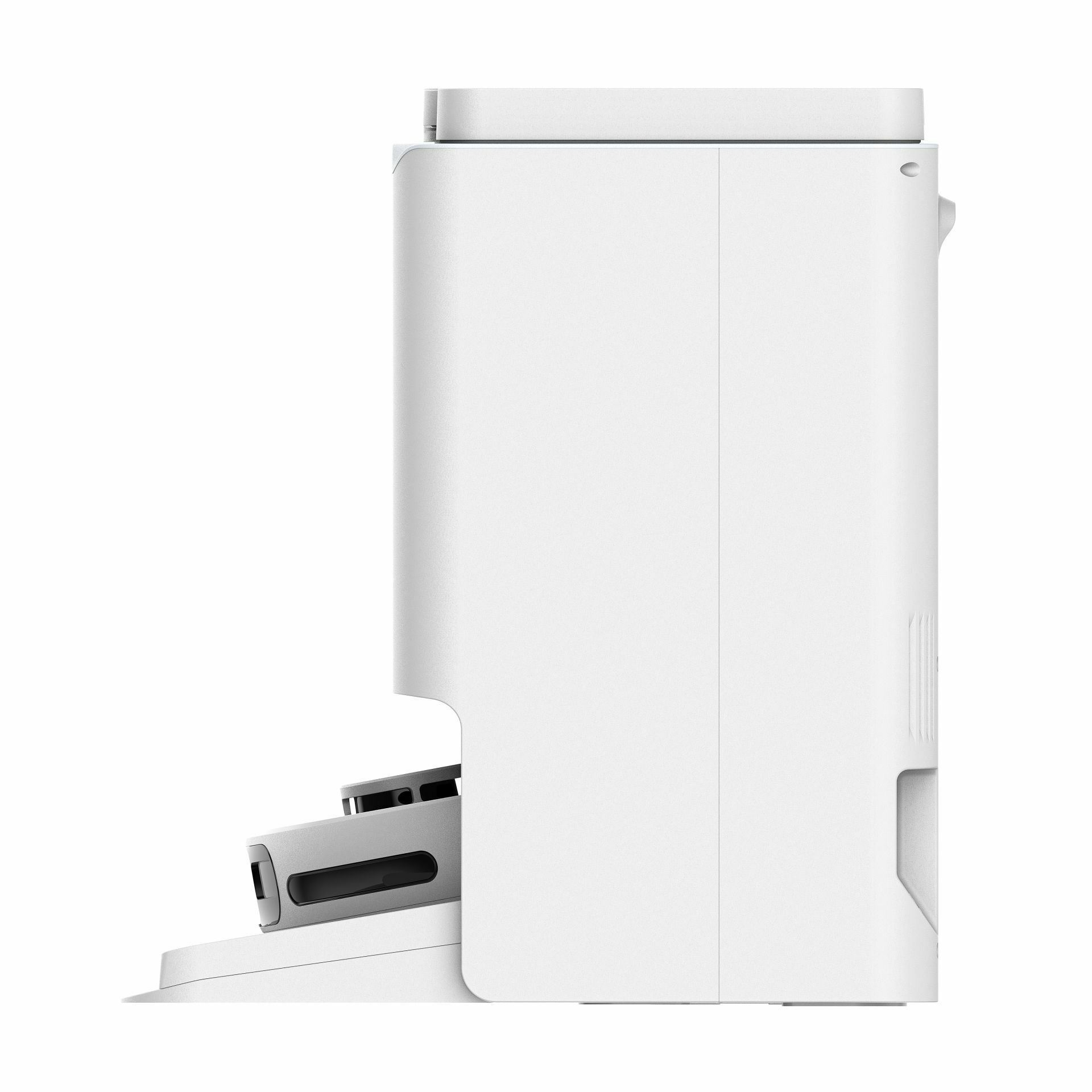 Robotski sesalnik in čistilec EZVIZ RS20 Pro z belim ohišjem ponuja sesanje in mokro čiščenje, samodejno namestitev in snemanje mokrih blazinic, 7200Pa moč sesanja, dvoslojni mop, LiDAR navigacijo, AI prepoznavanje predmetov ter večnamensko postajo z 5l rezervoarjem.