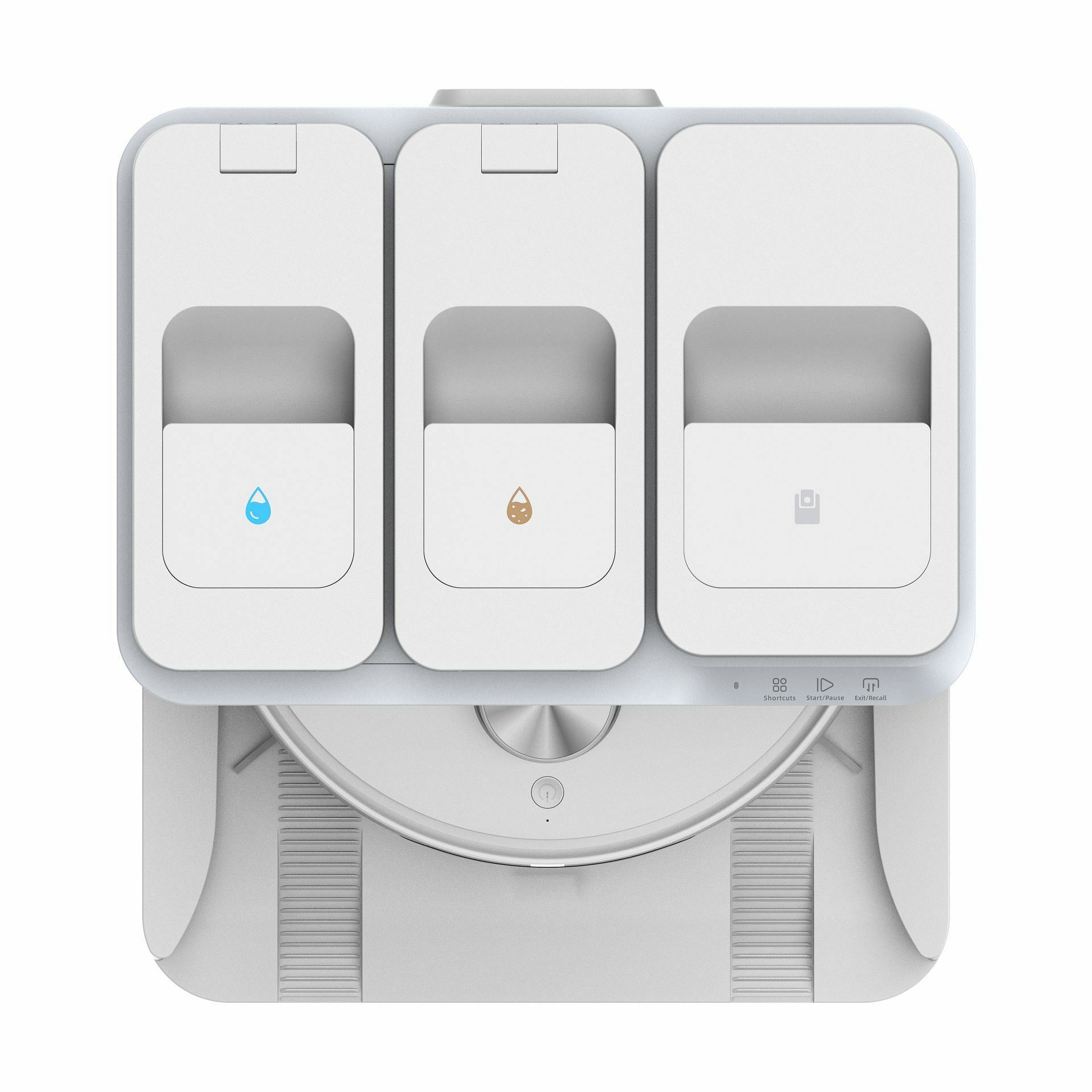 Velik rezervoar čiste vode in funkcije toplozračnega sušenja zmanjšujejo potrebo po ročnem vzdrževanju. Baterija 5200 mAh omogoča do 300 m² čiščenja na polnjenje. Združljivost z glasovnimi pomočniki omogoča upravljanje brez rok.