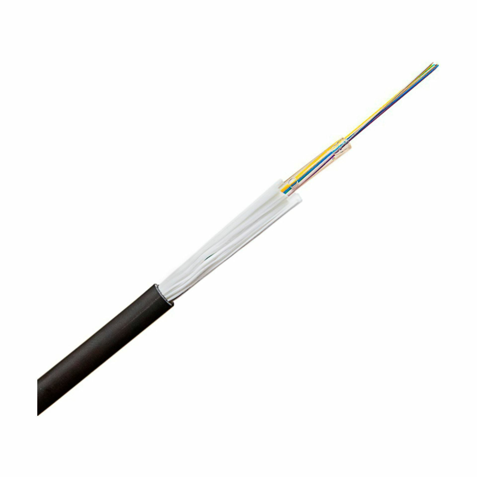 Optični kabel, 4 žilni, 9 µm, singlemodni, pakiranje 100m, za notranjo in zunanjo uporabo, vododporen, odporen na udarce, pritiska do 2000 N, črne barve. Navedena cena velja za 1 tekoči meter optičnega kabla.