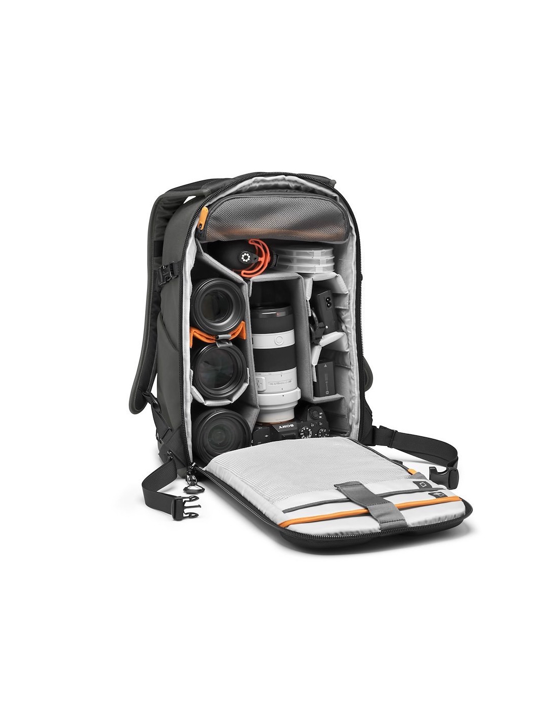 Shranite, zaščitite in prenašajte fotoaparat z nameščenim gripom in npr. 70-200mm objektivom, do štirimi dodatnimi objektivi, pripadajočo dodatno opremo, različnimi osebnimi predmeti ter 13-inčnim prenosnikom in tabličnim računalnikom v povsem novem najbolj prodajanem modelu fotografskega nahrbtnika - Flipside 400 AW III. Zaradi kombinacije zadnjega in stranskega dostopa, prilagodljive notranjosti in namenskega predala je to idealna rešitev za potovanja.