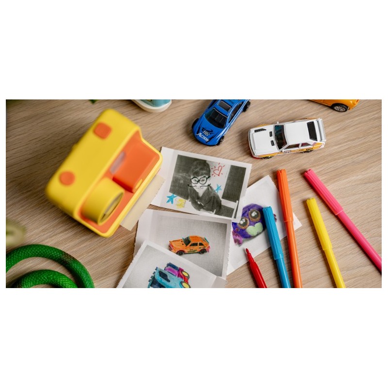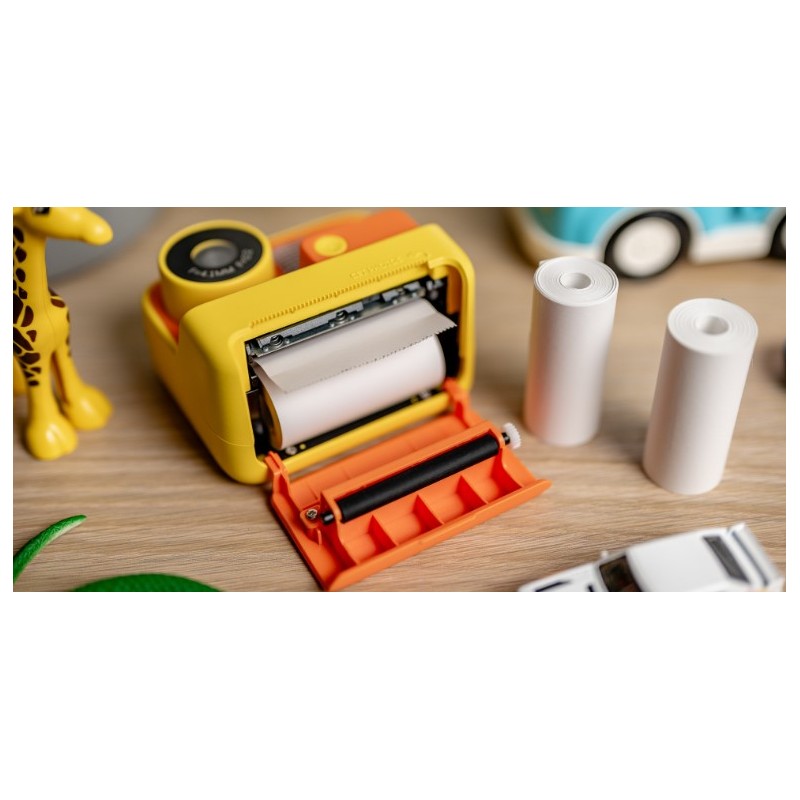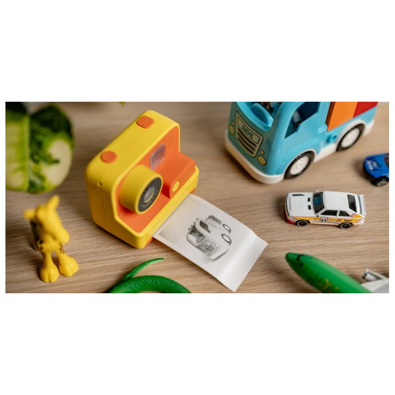 Fotoaparat s termo (ČB) tiskalnikom je primeren predvsem za otroke in je odličen način za spodbujanje ustvarjalnosti, zabavo in odkrivanje novih zanimanj. Fotoaparat omogoča fotografiranje in snemanje video posnetkov, ki se shranijo na microSD pomnilniško kartico (ni priložena). Vsako fotografijo lahko takoj natisnete z vgrajenim tiskalnikom, ki ne zahteva menjave tonerja. V kompletu so 3 rolice termalnega papirja, na eno rolico lahko natisnete cca. 58 črno-belih slik. Fotoaparat ima tudi barvni zaslon za predogled in LED svetilko za osvetlitev motiva. Vgrajeni digitalni učinki in filtri omogočajo dodatno okrasitev posnetkov.