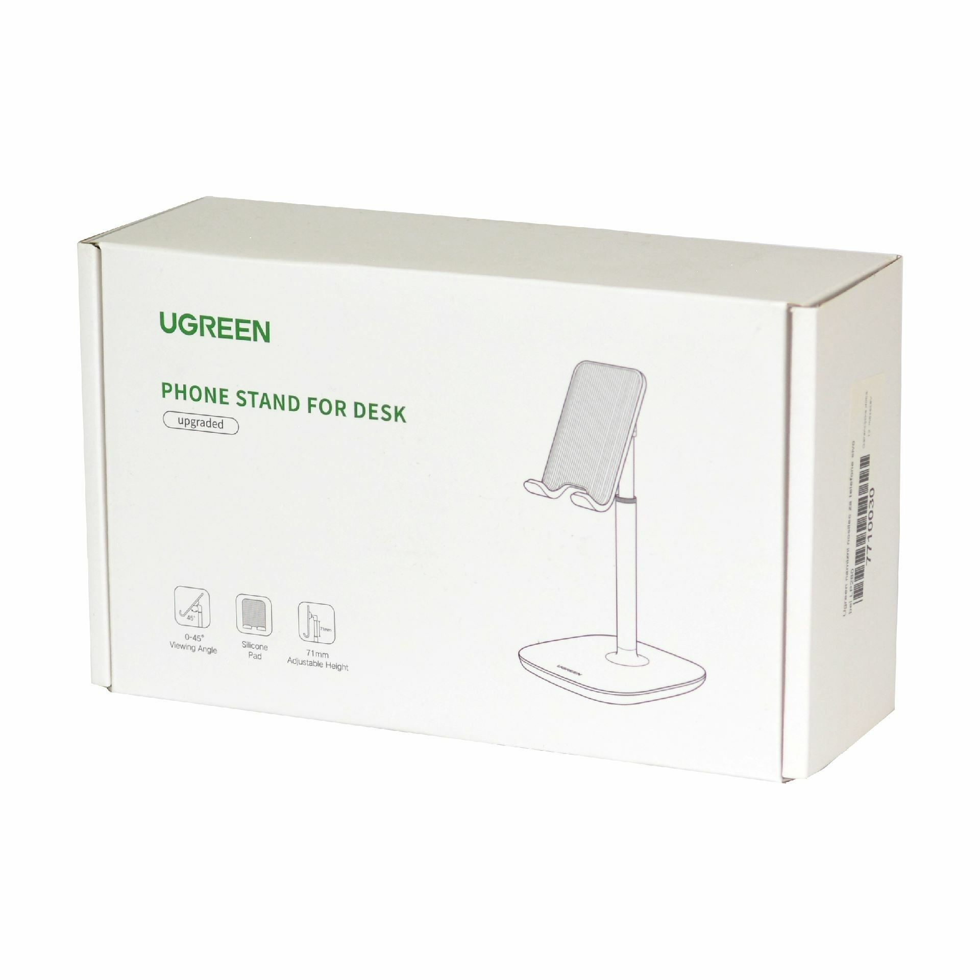 Namizno stojalo za telefon UGREEN je mogoče preprosto nastaviti na višino iz 18cm na 25cm, z nastavljivim kotom 5-45 stopinj vam zagotavlja udobnejši kot gledanja in pomaga zmanjšati obremenitev vratu. Za mobilni telefon z velikostjo zaslona od 4,7 (cca 12cm) palca do največ 7,9 (cca 20cm) palca z debelino do 1.4cm.